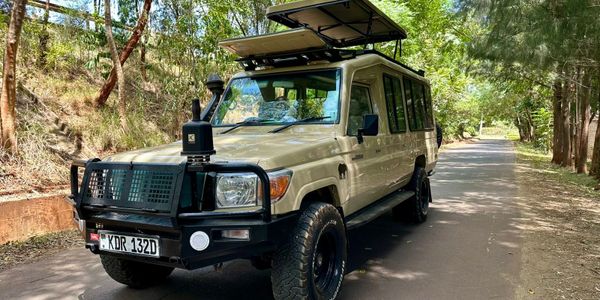 Hire a Toyota Land Cruiser Safari 7-seater Van in Nairobi, Nakuru, Nanyuki, Eldoret, Kisumu, and Mombasa. The cost of hiring this Land Cruiser Tourist van is KES 30,000 or $300 per day (6 am to 6 pm, during low season (Nov-June) While during peak season (July-Oct) it’s $300 or more. The cost includes fuel, Park fees for the tour guide and the jeep, and the Driver allowances and his accommodation. This Land Cruiser Four Wheel Drive is a versatile off-road 4×4 Van that can be used for; city tours and safari adventures, weddings van hire, team building van hire (or corporate travel hire), and airport transfers. It is ideal for both short-term private family hire & long-term corporate hire. Sit relax and enjoy the ride courtesy of Damhil Tours.